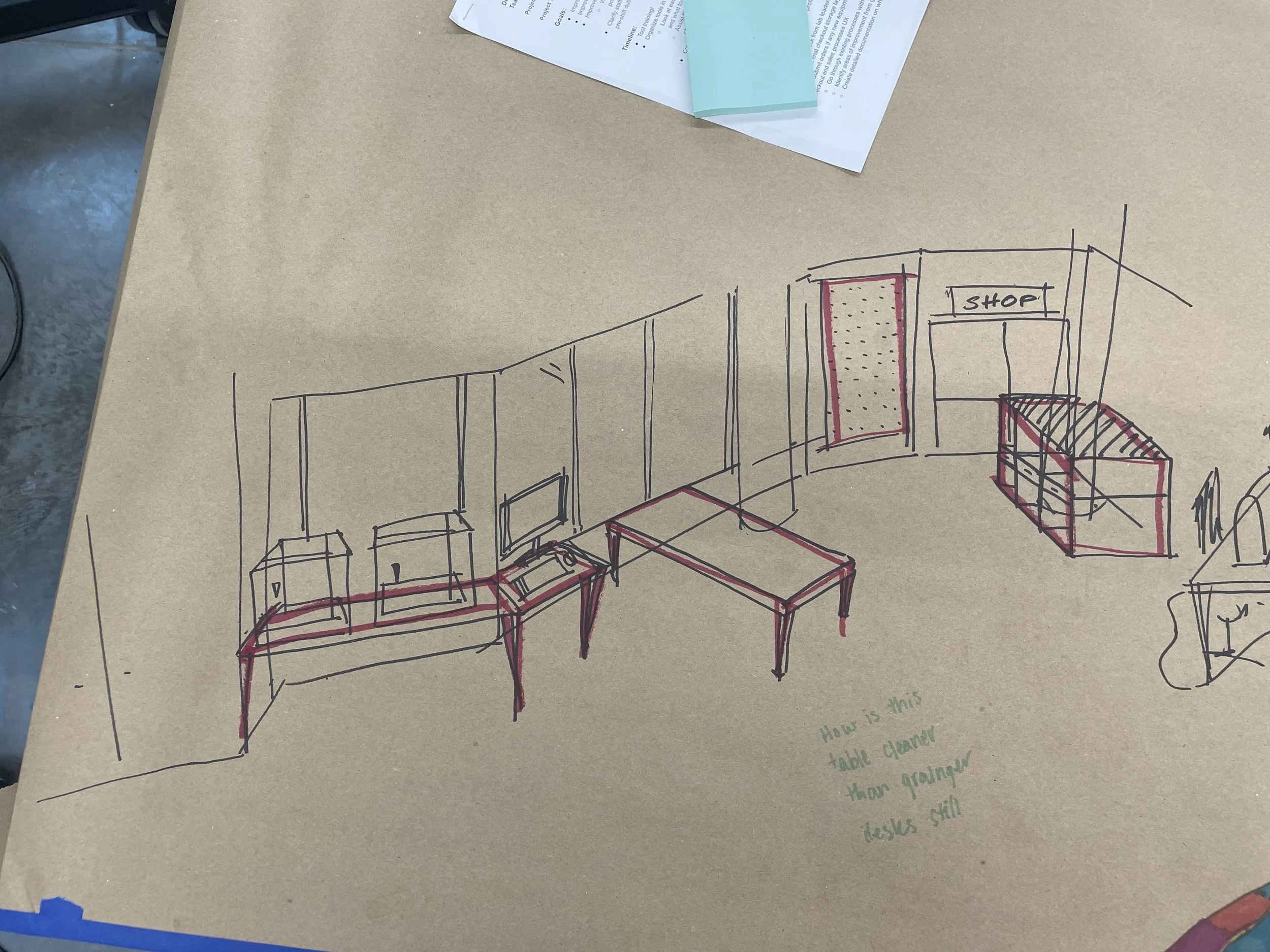 We laser engraved a board piece with the layout of the shop and rearranged how we wanted the flow of the space to look like.